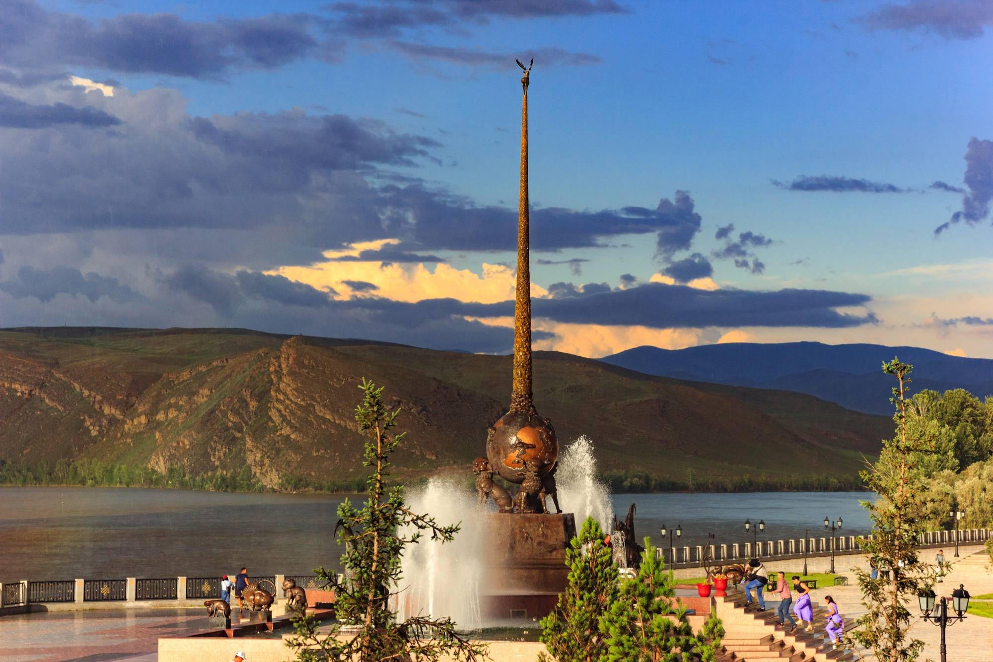 Начнём наше путешествие с величественного обелиска «Центр Азии», который стал символом республики. Этот монумент, созданный известным художником Даши Намдаковым, олицетворяет дух кочевого народа и его связь с природой и верой.