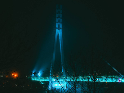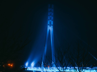 Вантовый пешеходный мост, соединяющий берега живописной Туры. Эта локация — негласный символ Тюмени и место встречи влюблённых пар. Ночью мост освещается специальной иллюминацией, что создаёт неповторимую романтическую обстановку. Отличное место для незабываемых свиданий.