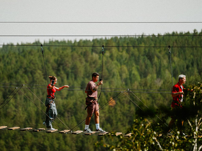 Экстремальный Челябинский край начинается здесь! Приезжай в парк GRIFON, чтобы совершить скоростной спуск на троллее, прыгнуть с веревкой со скалы, покорить подвесные качели, расположенные на высоте 6 метров, и отправиться в путешествие по местному веревочному парку.