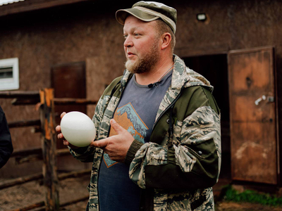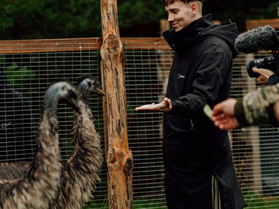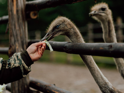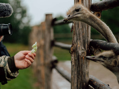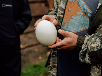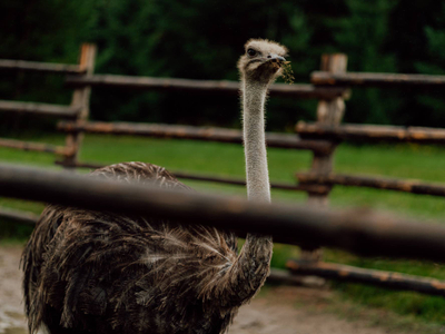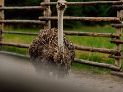 Тут разводят чёрных африканских страусов. Да, именно тут, на Севере. И знаете, что самое интересное, — они отлично адаптировались к климату. Статные птицы встречают гостей фермы в качестве хозяев. Кроме них здесь живут нубийские вислоухие козы, овечки, павлины, цесарки, чёрные и китайские хохлатые куры, уточки и гуси, фазаны, лошади и енот. О всех обитателях фермы можно узнать на экскурсиях.