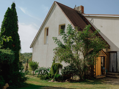 Отдых как у бабушки. Гостевой дом находится на окраине уникальной заповедной территории. Здесь тихо и спокойно — идеальное место, если вы решите сбежать от суеты. Еду здесь готовят из натуральных фермерских продуктов. Обязательно попробуйте легендарный луковый пирог! Для гостей есть баня, велосипеды и байдарки.