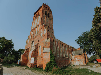 Старинная кирха, несмотря на полуразрушенный вид, очень атмосферная. С высшей точки, на которую можно попасть по крутой винтовой лестнице, открывается красивый вид на посёлок. В кирхе есть небольшая комнатка с загадочными баночками — местный музей стекла. Обязательно обратитесь к гидам, они расскажут очень интересные факты об этом месте. А ещё во дворе сооружения проходят концерты и спектакли.