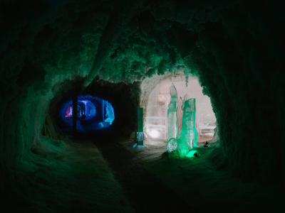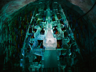 Пожалуй, такой туристический комплекс мог появиться только в Якутии. Это нетающий ледник прямо в горе. Температура здесь не опускается ниже -10 °С и не поднимается выше -4 °С. Внутри гостей ждут ледяные скульптуры, созданные якутскими мастерами, и аттракционы. Вы можете заглянуть в тронный зал властелина холода Чысхаана и ледяной бар, а в мини-музее палеонтологии представлена экспозиция останков мамонтов и других животных ледникового периода.