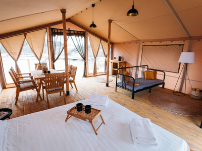 Глэмпинг «Белый колодец» – это 30 уютных домиков на берегу озера в окружении меловых гор, вкусный завтрак на воде от шефа и самые разнообразные развлечения для взрослых и детей в течение всего дня. Лауреат Национальной Победитель в номинации гостиничной премии 2022 "Лучший быстровозводимый отель из дерева", а также в номинации "Лучший глэмпинг".