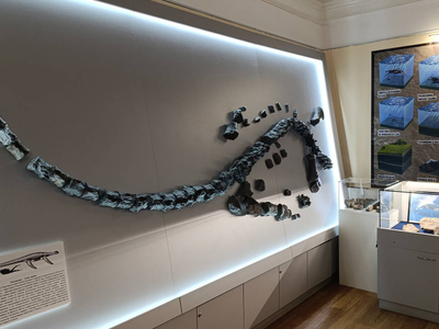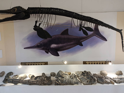 На экскурсии посетители отправятся в незабываемое и опасное путешествие навстречу с повелителями моря юрского и мелового периодов – гигантскими морскими рептилиями. В геологическом зале, экскурсовод расскажет о геологических особенностях региона, расскажет об эпохах присутствия на территории области древних морей и их обитателях, о строении недр Ундоровских гор и уникальном, имеющем мировое значение, Городищенском разрезе. В витринах зала представлены минералы и горные породы, в том числе те, которым обязана происхождением Ундоровская минеральная вода. Экскурсовод расскажет об основных представителях ископаемой фауны – аммонитах и белемнитах, так и редких наутилусах.
