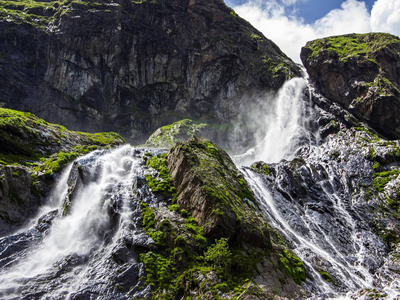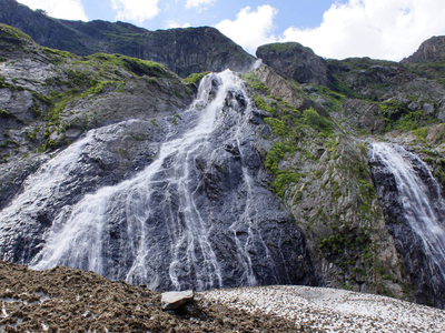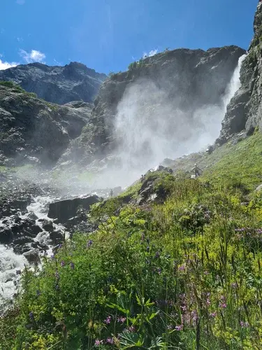 Большой Суфруджинский водопад — это один из самых мощных и красивых водопадов Домбая.Софруджинские водопады — это 3 больших водопада, срывающихся со склонов Софруджинского ледника. По склонам окрестных гор стекает еще много небольших водопадов (до 40 метров высотой). А вдали можно увидеть небольшие водопады в верховьях реки Аманауз, прямо около ледника.