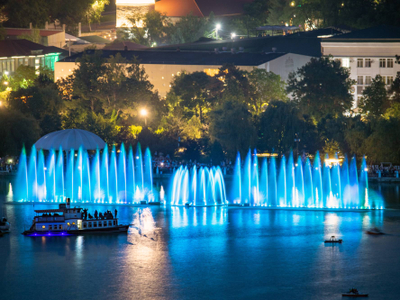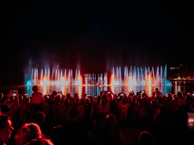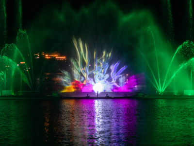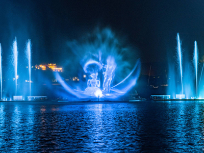 Представление самого большого поющего фонтана в России, установленного в акватории озера, можно увидеть в Абрау-Дюрсо! Светозвуковое шоу является неотъемлемой частью отдыха каждого гостя, посещающего наш курорт. Каждый год программа фонтана обновляется и дополняется спецэффектами. Разработчиками системы являются специалисты из Италии. Из чего состоит шоу: - Танцующие в такт музыке струи воды – длина до 70 метров; - Огненные пушки и лазерное шоу; - Полотно из брызг, на котором транслируются визуальные образы; - Разнообразие музыкальных композиций – от классических произведений Арама Хачатуряна до группы «Тату»; - Интереснейший рассказ о развитии производства игристого в Абрау-Дюрсо.
