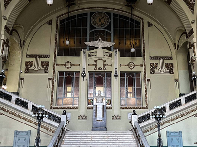 Витебский вокзал — железнодорожный вокзал Санкт-Петербурга, один из старейших вокзалов России, открытый в 1837 году. Витебский вокзал примечателен величественным входным порталом, декоративными деталями фасада и внутренней отделкой, исполненной в стиле ар нуво. Витражи, керамические плитки, резные деревянные панели придают вокзалу неповторимый шарм и оригинальность. Он символизирует связь времен и этапов развития железнодорожного транспорта России, оставаясь живым свидетельством технического прогресса и инженерных решений XIX–XXI столетий.