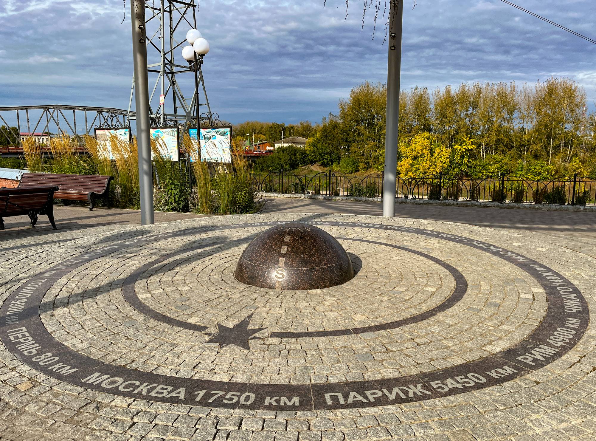 Этот памятник появился в 2007 году на набережной Сылвы, рядом с монументом первопроходцам Кунгурской земли. В 2011 году кунгурский «Пуп Земли» был отмечен как лучший объект монументального искусства на фестивале «Открой Приволжье». На невысокой наклонной платформе – гранитная полусфера с розой ветров, а вокруг – линия, на которой обозначено расстояние от Кунгура до Перми и мировых столиц: Москвы, Парижа, Нью-Йорка, Сиднея, Пекина и др.