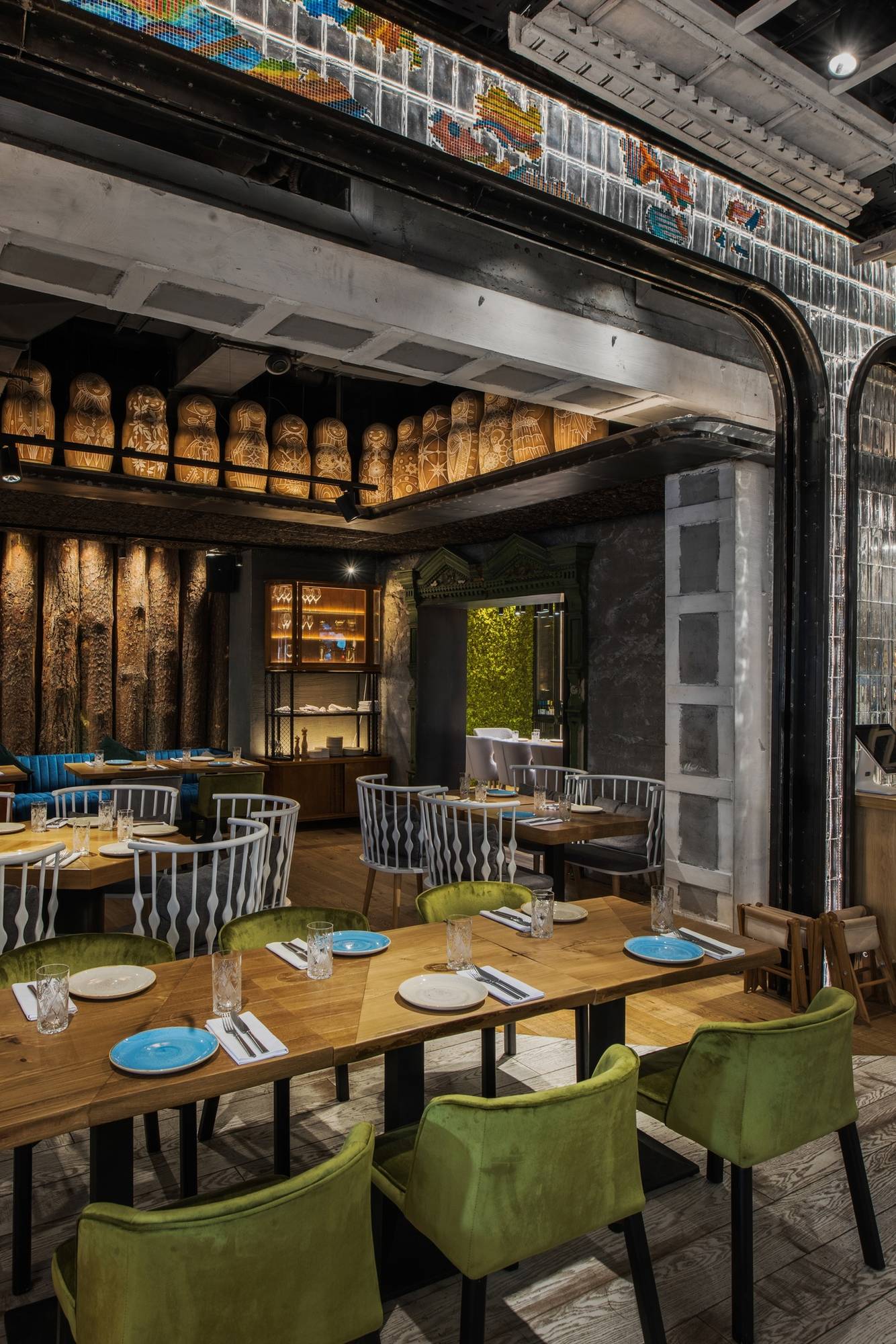 Посольство Сибири в Москве. Московский филиал новосибирского ресторана Дениса Иванова с остроумным ассоциативным дизайном и отличной еду по таежные настойки, хотя и не только. Пельмени из четырех видов мяса и строганина из муксуна, грузди в сметане и марал с перловой кашей, губы лося и омули-пеляди в разных видах и еще множество сибирских, русских и советских реплик, достоверно и современно исполненных шефом Евгением Кузнецовым.