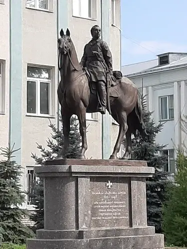 Монумент, посвященный известной русской женщине-воину, участнице Отечественной войны 1812 года. Надежда Дурова, переодевшись в мужскую одежду, служила в армии и стала первой в России женщиной-офицером.
