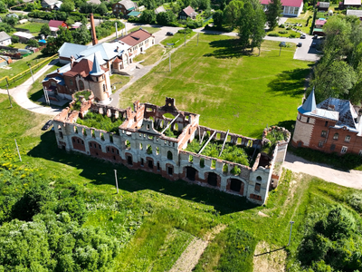 Попадая в усадьбу со стороны конного двора, путешественники с восхищением застывают перед двухэтажным зданием с башнями в полной уверенности, что это и есть дом Храповицкого. Как же они бывают потрясены, когда выходят к самим хозяйским хоромам! Да, Владимир Храповицкий денег на преображение усадьбы не пожалел: для лошадей отгрохал небольших размеров дворец, для себя построил невероятной красоты готический замок, в котором было больше 80 комнат! С таким же размахом обустраивалось и остальное имение. Увы, сейчас усадьба находится не в лучшем состоянии. В советские годы за ней не следили, так что от большинства построек – а здесь их было больше 70 – ничего не осталось. Например, утрачен театр, который, по желанию хозяина, делали как миниатюрную копию «Мариинского». Но и то, что есть сегодня в виде стен, способно подарить огромный эстетический восторг даже неискушенному в архитектурных формах путешественнику.