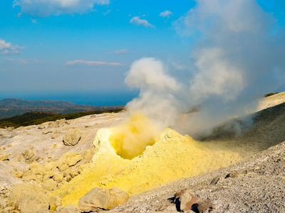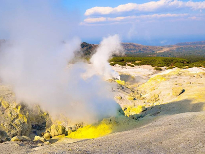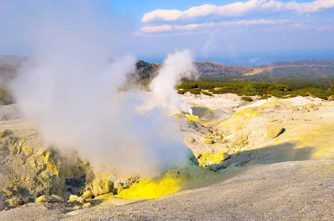 Действующий вулкан в южной части острова Кунашир. Фумарольные поля вулкана Менделеева являются частью его активной вулканической системы.