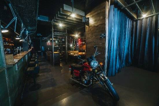 Юпитер 5 – частичка истории нашей страны, определенная эпоха. Голубая мечта советских подростков. Тех, кто вырос из велосипедов и мопедов и обзавелся первым мотоциклом – символом взрослой жизни. Интерьер наполнен вещами с ретро-налетом: грубые деревянные столы, металлические бочки, мотошлемы, разнообразное автожелезо и старые журналы. И, конечно, на почетном месте герой и символ паба – Юпитер 5, собственной персоной.