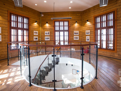 Построенная в 1908-1909 годах в рамках масштабных работ по устройству городского водопровода водонапорная башня является одной из самых заметных построек в центре Старой Руссы. Она представляет собой шестигранную в плане кирпичную трёхъярусную постройку с верхним деревянным ярусом. Деревянное завершение башни было со временем утрачено, но в ходе начавшейся в 2019 году реставрации его восстановили в первоначальном виде. В настоящее время водонапорная башня открыта для посетителей: на первом этаже работает туристско-информационный центр, а в верхнем ярусе на 38-метровой высоте оборудована смотровая площадка.