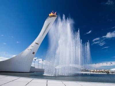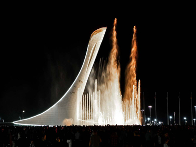 Поющий фонтан в Олимпийском парке был построен специально под открытие и закрытие Олимпийских игр в 2014 году и правильно называется «Чаша Олимпийского Огня».