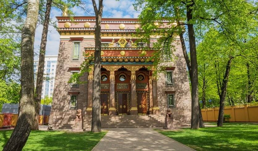 Относится к Буддийской традиционной сангхе России, школа гелугпа. По свидетельству летописцев Санкт-Петербурга, первые буддисты на берегах Невы появились во времена строительства Петропавловской крепости, с которой начиналась новая столица России. Это были волжские калмыки. Архитектурный проект храма в соответствии с канонами тибетской архитектуры был разработан в 1909 году студентом Института гражданских инженеров Н. М. Березовским и архитектором Г. В. Барановским — автором проекта Елисеевского гастронома на Невском.